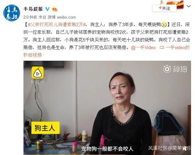 還有,深圳一位小孩被鄰居養的寵物狗先後咬傷2次,周圍孩子被咬傷十幾次,孩子父親忍無可忍,把狗打死,孰料竟遭到狗主索賠2萬。狗主説了,小狗是花5千塊買來的,每天吃十幾塊的燒鴨,狗咬了人自己會賠償,但狗也是生命,養了3年被打死也應該有賠償。自己養狗不拴繩,沒有犬證,咬傷了人,不僅沒有道歉反省,反而還有臉向受害者索賠,足見無恥之極。倘按這樣的邏輯推而廣之,如果那孩子被狗咬死了,難道你這狗主也會去抵你的狗命嗎?