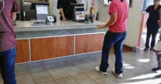 沒有搶到辣醬的小青年決定在櫃枱上表演一段RAP。