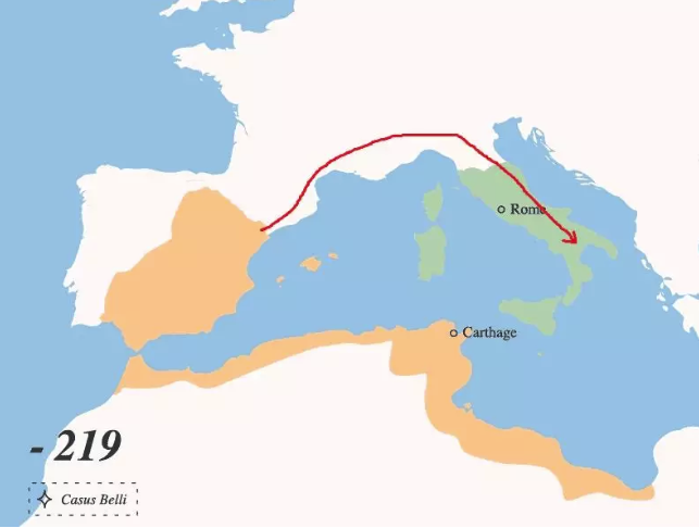 公元前219年,被西方人稱作“戰略之父”的漢尼拔終於取得了足夠多的支持,並且於次年初正式開拔,攻向羅馬,開啓了第二次布匿戰爭。
