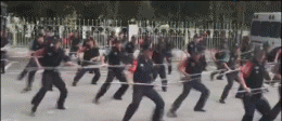 其實絕大多數PC材質的警用盾牌是不防彈的,其主要作用是組合成盾陣,應對犯罪分子投擲的石塊和木棍,有時還能集體前進驅散人羣,疏通道路。