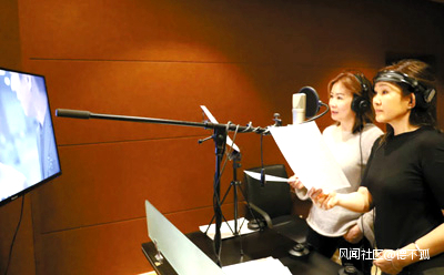 蒙古國配音演員奧雲(左)和導演巴特其其格在為《戀愛先生》配音。(圖片來源:人民日報 霍文攝)