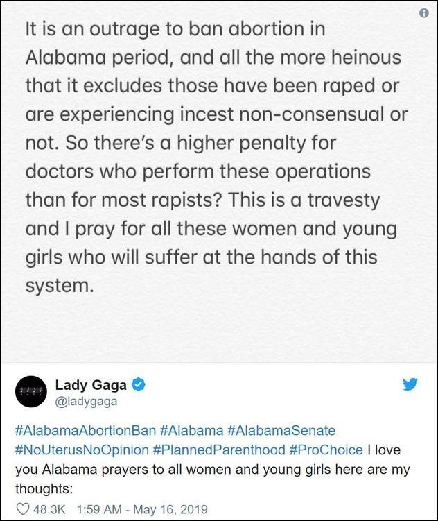 Lady Gaga、馬伊琍同抗議反墮胎法案_風聞