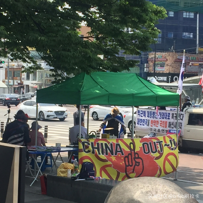 韓國社會常有反華人士在大學校園門口掛出示威條幅