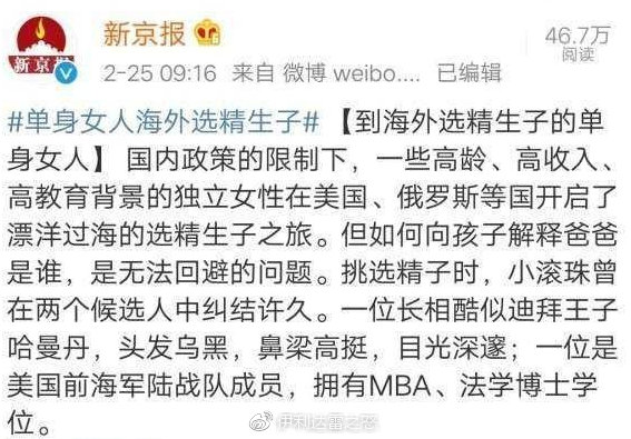 新京報大力報道加州精子銀行,聲稱該精子銀行可以選擇捐精者身高、長相、教育背景等等,個個都是名校畢業上流人士,引發大量女性網友歆羨。