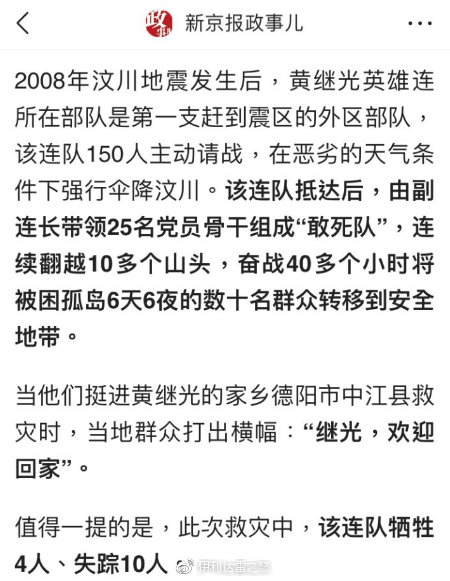 新京報曾造謠汶川地震救援過程中,英雄連傘兵隊犧牲4人、失蹤10人。