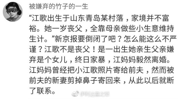 江歌案中,新京報發佈的報道捏造江歌一歲喪父的情節。