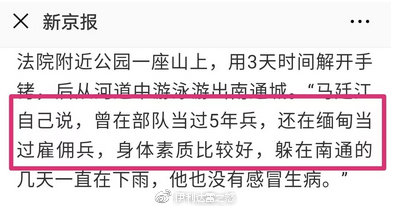 新京報曾在對逃犯馬廷江的報道中捏造其“退伍軍人”身份,引發討論。隨後被打臉,馬廷江在20歲時就因搶劫而入獄,隨後參與販毒等犯罪活動。