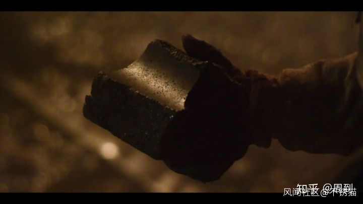 劇中一位消防員拿了一塊不明黑色固體一段時間後,手上出現了燒傷的症狀。
