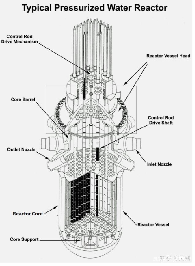 堆芯就處在一回路的反應堆壓力容器中,下圖就是壓力容器