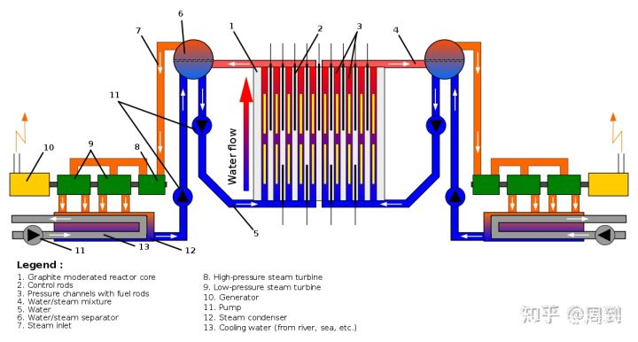 另外核反應堆的爆炸和核彈爆炸有着很大的區別,核反應堆爆炸大部分是水與包殼金屬在高温反應產生的氫氣產生的爆炸。比如福島核事故的爆炸本質就是水與包殼金屬鋯在高温時產生氫氣所導致的,但福島核事故在事故早期是可以補救的,本可以將海水部分引入反應堆冷卻的,但這樣會損失掉堆芯(海水的腐蝕),但是公司想保住這個堆,結果拖延導致了進一步的核泄漏。而切爾諾貝利的爆炸直接原因應該是反應堆功率激增,使得温度急劇升高蒸汽發生膨脹導致了爆炸,考慮到使用石墨作為慢化劑,石墨能與高温水蒸氣生成易爆的氫氣與CO,理論上也是爆炸的原因之一。