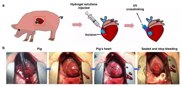 5 月 14 日,《自然-通訊》(Nature Communications)發表的研究描述了一種可以讓動脈和心臟創口閉合的光敏膠粘劑,該材料能快速止住高壓大出血,且安全可降解,無不良反應,其效果已經在豬身上得到了證實,有望將來應用到臨牀。