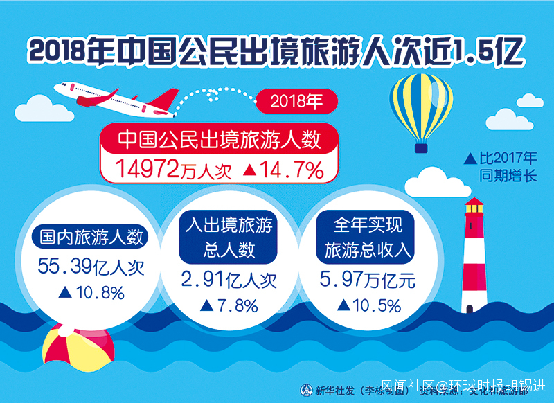 近年來,隨着我國經濟社會發展,人民生活水平得到顯著提高,國民旅遊休閒生活更加精彩,出境旅遊成為新的時尚。圖為2018年中國公民出境旅遊相關數據。 新華社發 李棟/製圖