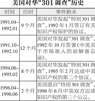 從1991年開始到1995年,中國人從國內媒體上聽到最多的恐怕就是“301調查”。看看下面這張圖表就知道,那幾年我們遭遇了美國人多少次“301調查”。
