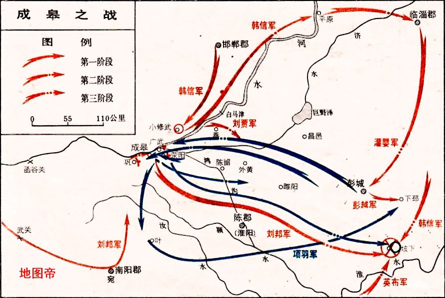 劉邦拼了老命北渡黃河跑到修武,有了韓信的幫助,這才可以喘一口老氣。劉邦知錯能改,知道自己的實力不足以和楚軍進行戰略決戰,那就用“拖”字決,打不死項羽,也要拖死他。