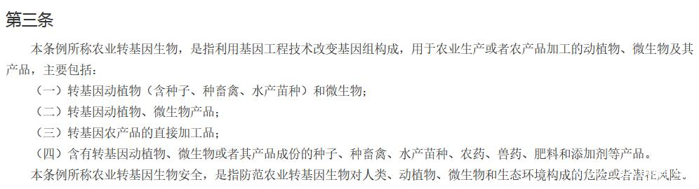 此條例並沒定義科學名稱,也不是指導命名, 而是解釋條例中”農業轉基因生物“指的範圍,又是一個偷換概念。