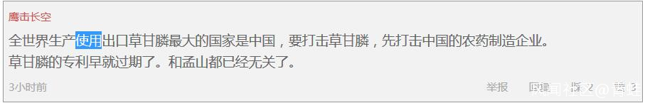 中國是第一產糧大國,草甘磷卻遠遠低於其他國家。