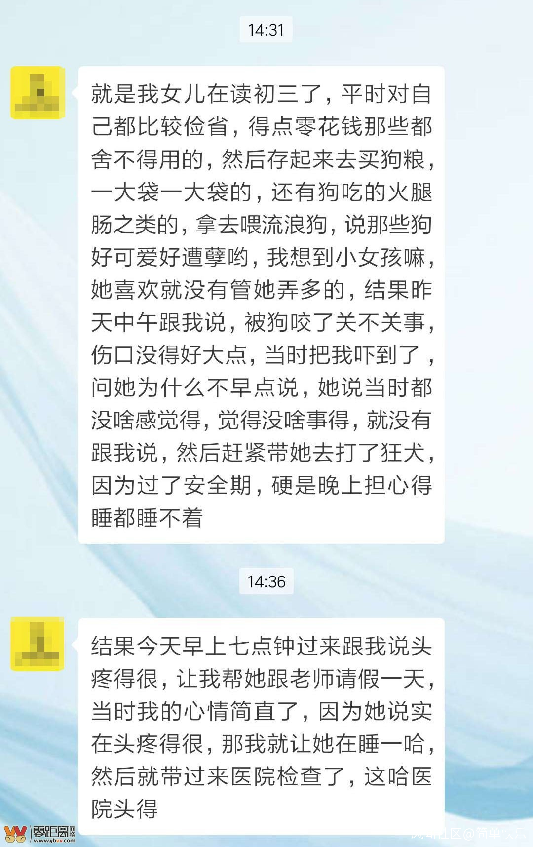 今日(5月14日),網友@楊女士爆料稱:我家娃娃好心省吃儉用存錢買食物喂流浪狗,沒想到居然被流浪狗咬了,今天早上頭暈才給我説,現在還在醫院裏!