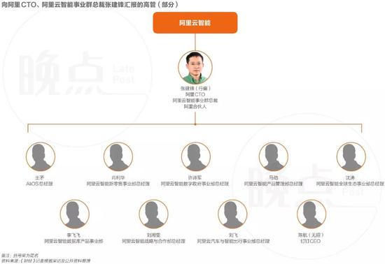 據《財經》記者不完全統計,目前直接向張建鋒彙報的管理層包括AliOS總經理王矛、阿里雲智能新零售事業部總經理肖利華、阿里雲智能數字政府事業部總經理許詩軍、阿里雲智能產品管理部總經理馬勁、阿里雲智能全球生態事業部總經理沈濤、阿里雲智能數據庫產品事業部李飛飛、阿里雲智能戰略與合作部總經理劉湘雯、阿里雲汽車與智能出行事業部總經理劉飛等人,釘釘CEO陳航(無招)目前也直接向張建鋒彙報。