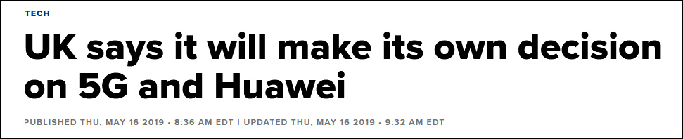 英國:英國文化大臣萊特(Jeremy Wright)週四表示,英國會在5G和華為問題上自行做出決定。