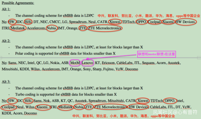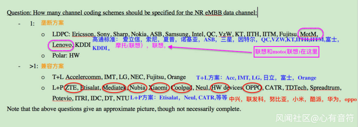聯想(2018.05.16)説法:“聯想支持了三星(並非網傳高通)牽頭的採用LDPC為eMBB數據信道的唯一編碼方案,沒有支持Polar碼,但這個反對票並未對最後結果產生任何影響;”