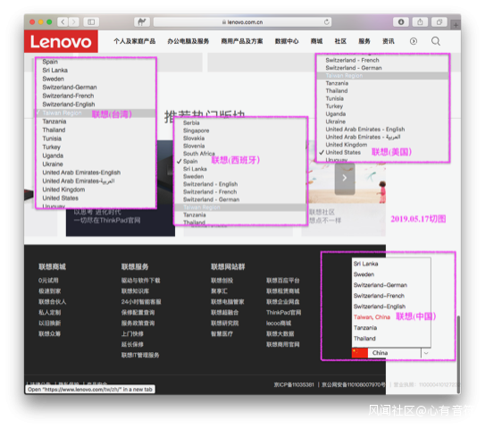 這是今天(2019.05.17)的聯想幾個不同銷售地區網站的情況。