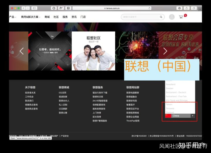 這是www.lenovo.com打開後網站最下面選擇國家/地區的下拉菜單。 對比一下香港怎麼寫的。