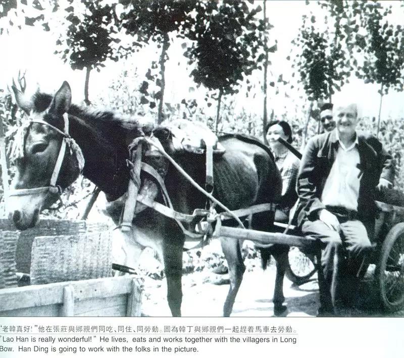 韓丁(右一)在山西張莊與鄉親們趕馬車勞動