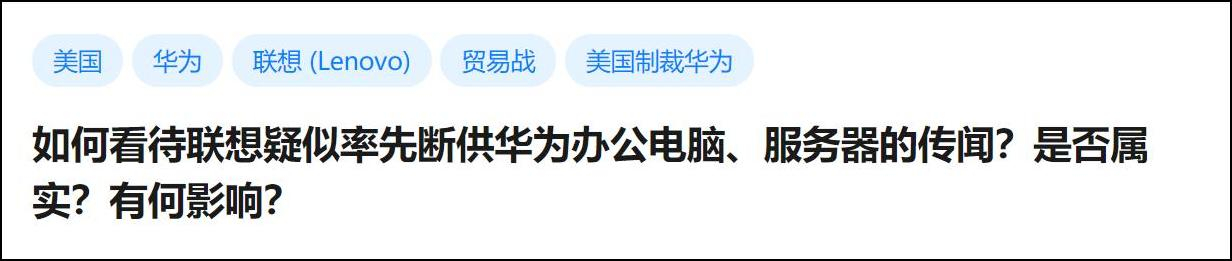 如何看待聯想疑似率先斷供華為辦公電腦、服務器的傳聞?是否屬實?有何影響?_風聞