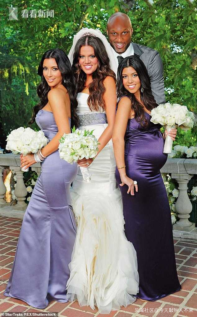 奧多姆與卡戴珊家族三姐妹 中間為他的妻子科勒·卡戴珊