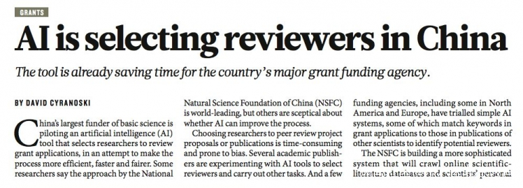 Artificial intelligence is selecting grant reviewers in China https://www.nature.com/articles/d41586-019-01517-8