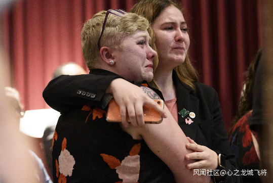 兩位女性墮胎權利支持者,聽到該法案通過後痛哭。(圖源:《紐約時報》)
