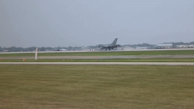 一頭撞到了另一架停在跑道邊的F-16C屁股上