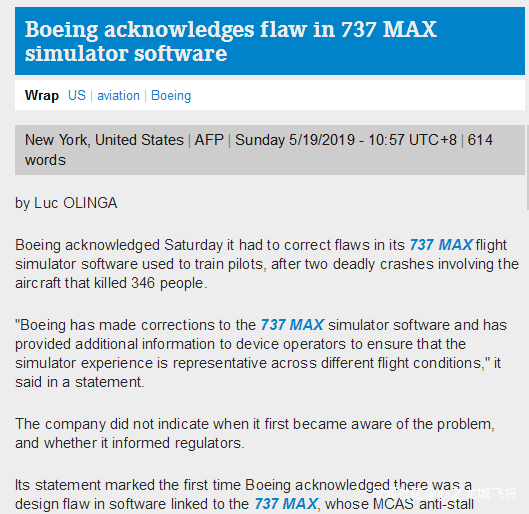 法新社:波音公司首次承認737MAX飛行模擬器軟件存缺陷_風聞