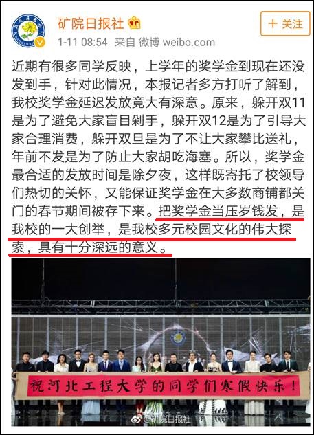 關於學校壓着獎學金不發,他也有一些獨特的解釋。