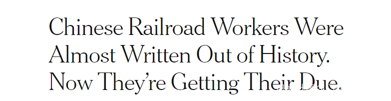 美國《紐約時報》網站5月14日刊登《鐵路華工幾乎被歷史抹去。現在,他們得到了應有的評價》一文。文章稱,150年前,華人勞工為修建橫貫美國大陸的鐵路做出過巨大貢獻,但他們的貢獻長期以來幾乎被遺忘。經過150年,在華工後裔以及學者們的努力下,他們終於得到了美國政府的肯定。