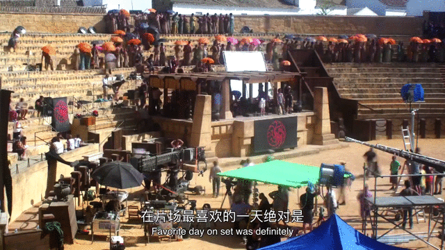 第一場戲是第一季第一集,國王王后一行人來到臨冬城,一個航拍大場面。