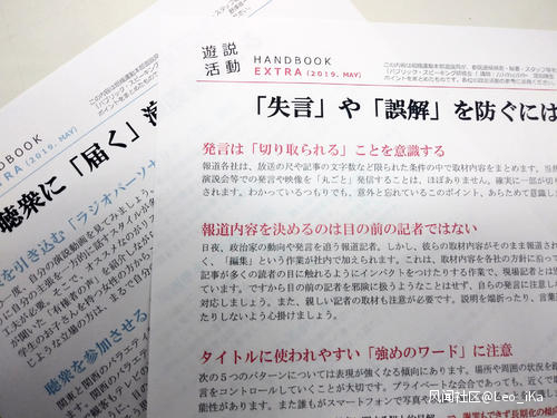 正是因為有這些“友軍之圍”,為了使參議院不出現意外情況,自民黨特地製作了針對失誤發言的言論手冊注意事項,要求自民黨的國會議員們認真閲讀。NHK的報道中透露,這份手冊還特地截取了大量日本媒體的報道以及報道標題的製作方式等內容,意在讓議員認識到什麼樣的言論容易被媒體抓住大做文章。在針對歷史認識、政治信條以及重大災害等關鍵發言的部分,手冊給出大量範例,意在控制議員們發言不會偏離大致方向。