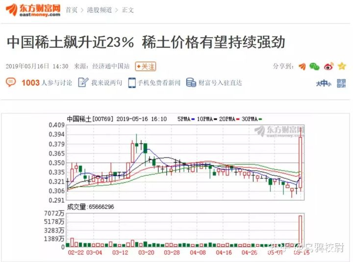 有中國人發現了這點,就在這個消息出來當天稀土行業的股票大漲,今天又集體漲停。