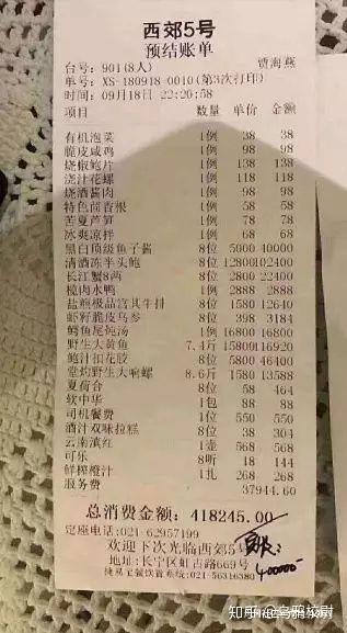 5萬塊啊,一個普通人好幾個月的工資他們一頓就吃掉了。