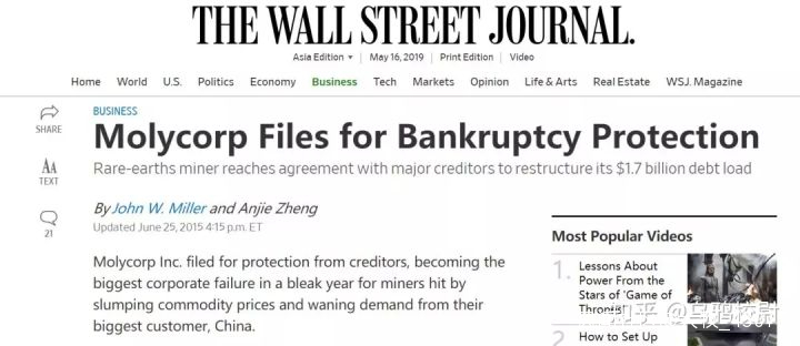 圖:Molycorp申請破產保護