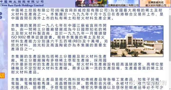 從這家公司的簡介裏我們可以查到,這家公司是私企,1999年在香港上市,主要經營項目為稀土和耐火材料。