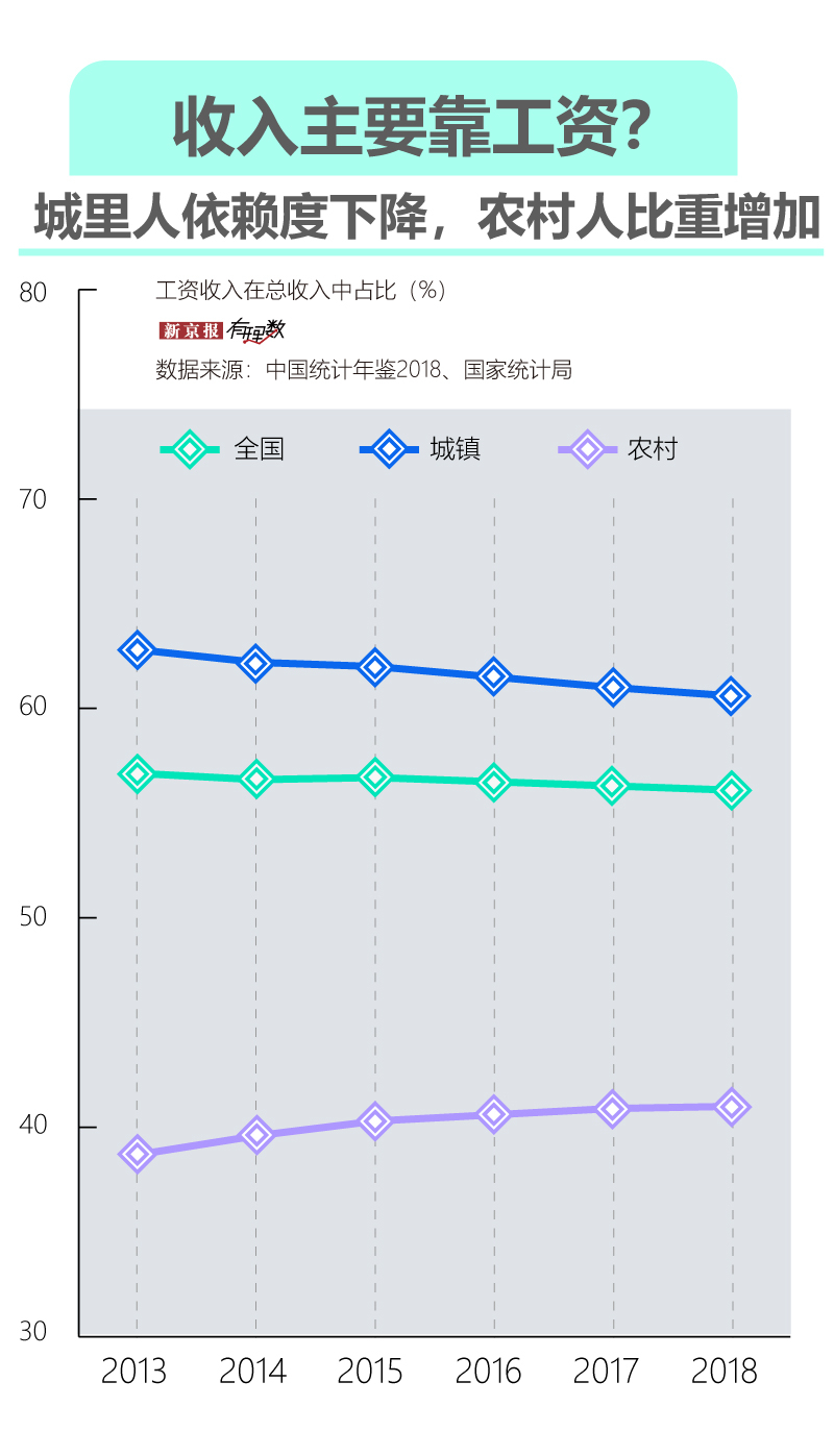 數據分析發現,2018年,作為很多人主要收入來源的工資收入,城鄉居民對其“依賴”程度存在不同,農民年總收入中的工資收入佔比在提升,城市人的佔比卻在下降;在城市,平均薪資月入過萬的行業正在逐年增多,但有些行業漲工資的節奏猶如坐過山車。