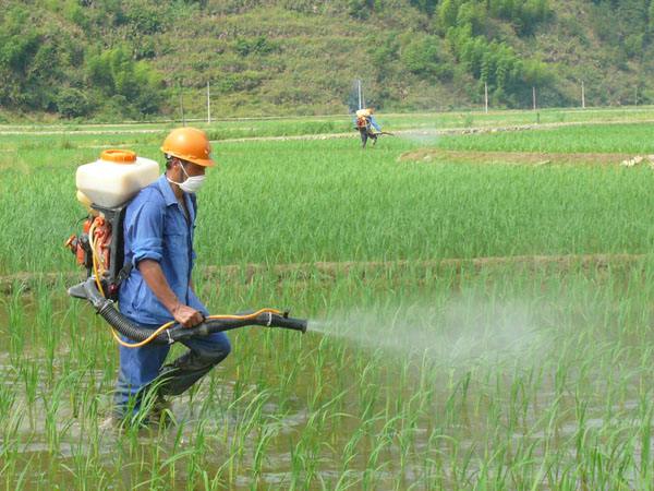 為水稻打農藥的農民必須要有適當防護,以避免長期接觸農藥對農民健康產生傷害