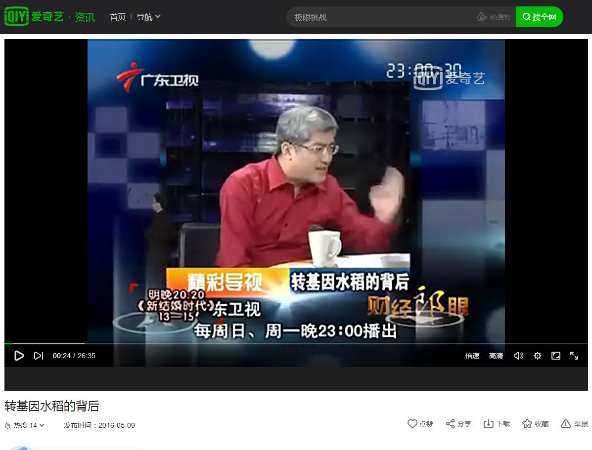 **風聞帳號 @青蛙 宣稱孟山都公司在華有數個專利,然後就反推導出中國水稻有外國專利。**我想任何一個正常人都不會將這兩個毫不相關的因素如此聯想吧。外國公司在華有多少專利,與中國的某個產品是不是用外國的專利,毫無關聯。其宣稱指責中國的“華恢一號”水稻有外國專利的時候,不應該拿出“華恢一號”水稻具體在哪個專利上使用外國貨的實證嗎?@青蛙 對此給出了一個視頻節目作為其觀點來源,我們點開該視頻地址,映入眼簾,氣勢洶洶高談闊論的是台籍經濟學者郎鹹平……
