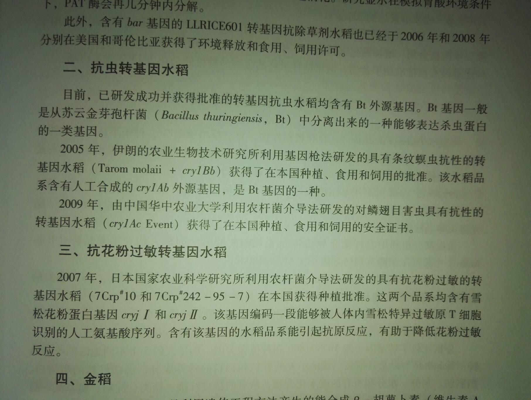 農業部初版的實體權威資料《轉基因30年實踐》表明包括伊朗、日本等國都有批准種植轉基因水稻