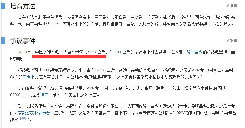 **1)對比樣本有普遍性:**參與對比的水稻是廣泛種植的非轉基因水稻品種,其平均產量在440~460公斤左右,即便按照我國在2013年(視頻實驗為2002年)左右的水稻平均畝產,其產量也是在平均線之上,符合實驗要求。