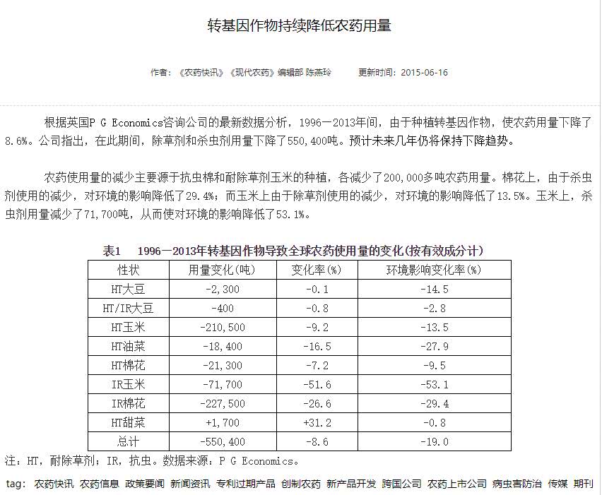 拜託,**轉基因作物的另外一個優勢恰恰就是降低農藥的使用量。這樣的實驗不正好説明這個優勢嗎?**我想飽受農藥危害之苦的農民以及消費者都會樂見一個降低農藥使用量的技術得到應用。