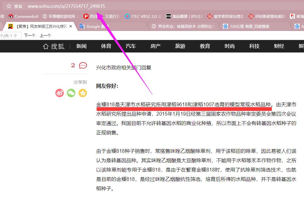 @青蛙 在其自己文章的末尾還聲稱**“全世界沒有轉基因水稻種植許可”**,指責“在中國有人偷偷種,並拿出去賣”,他附上了一個鏈接(http://www.sohu.com/a/217554717_249615)看似進行了舉證。但這可以證明他説的是事實嗎?顯然是否定的——最簡單的核實就是打開他的鏈接,看看裏面究竟説什麼?
