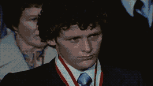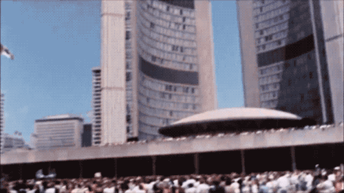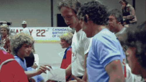 他的前方是聚集起來為他喝彩的人羣,後方是為他護航的安大略省警察局。本來不想讓別人叫自己“英雄”的 Terry 突然感到自己不得不在意別人的眼光。