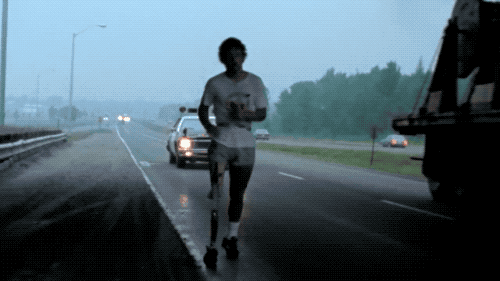 現在,他的身體就像差了一塊的拼圖。雖然他的左腿很強壯,但是他的右腿是用玻璃鋼製的,而且當時的義肢只能用來走路,還沒有先進到允許佩戴者奔跑的程度,所以斷肢處常常會因為跑步而流血。
